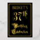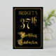 The front of this ornate and opulent foil thirty-seventh birthday celebration invitation design features the message “37th Birthday Celebration” in elegant script-style text. It also has a personalised name. The background of the front is coloured black by default (although it can be customised to a different colour). The back features personalised details about the event, such as the date, time, location, and any other relevant information. Fancy, elegant, customisable invitations like these might be used to invite guests to a birthday celebration/party being held to honour somebody’s 37th birthday. [~Z0000589]