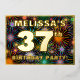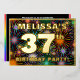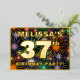 The front of this exciting and bold thirty-seventh birthday celebration foil invitation card design features an editable name, a large number “37th”, the message “BIRTHDAY PARTY!”, and a border. The background of the front features a vibrant, colourful pattern that resembles bursting celebratory fireworks. The back features personalised details about the event, such as the date, time, place/venue, and any other information that may be important. Personalised invitations like these might be a fun way to invite guests to a birthday party being held to honour somebody’s 37th birthday. [~Z0000602]