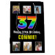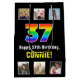 This cheerful and joyful birthday gift bag design features a large number “37“ having a colourful rainbow spectrum inspired gradient pattern, plus the message “Happy 37th Birthday,“ and an editable recipient name. The photos above and below the message can be personalised, perhaps with photos of the recipient, the recipient’s family and friends, and/or the sender(s) of the gift. A giftbag like this might be used when wrapping presents being given to somebody in celebration of their thirty-seventh birthday. (Photography © Storytree Studios, Stanford, CA.) [~Z0000669]