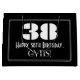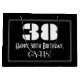This vintage appearance 1920s/1930s look inspired birthday-themed gift bag design features a large art deco look inspired number "38", the message "Happy 38th Birthday,", a custom name, and a border pattern consisting of thin lines. The background is coloured black. A gift bag like this might be used when wrapping gifts being given to somebody in celebration of their thirty eighth birthday. [~Z0000495]