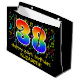This fun, colourful, and vibrant birthday themed gift bag design features a large number "38" having a rainbow spectrum gradient inspired pattern. It also features the message "Happy 38th Birthday,", and a custom name. Part of the background features a colourful music notes and symbols pattern. A gift bag like this might be used when giving a gift or present in honour of somebody’s 38th birthday. [~Z0000425]