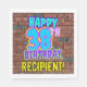 This fun birthday paper napkin design features the message “HAPPY 38TH BIRTHDAY,” having a colourful, vibrant, graffiti-inspired appearance, in addition to an editable recipient name. The background features a pattern inspired by the look of a brick wall. Paper napkins like this might be used when celebrating somebody’s 38th birthday. [~Z0000534]