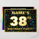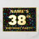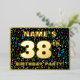 The front of this vibrant thirty-eighth birthday celebration/party foil invitation card design features a customisable name, a large number “38th”, the message “BIRTHDAY PARTY!”, and a border. The background of the front features a fun, colourful pattern of musical notation symbols. The back features personalised details about the event, such as the date, time, venue, and any other information that may be useful. Personalised invitations like these might be a fun way to invite guests to a birthday party being held to honour somebody’s 38th birthday. These might be extra special if that person is a musician, a songwriter, a composer, a singer, or likes listening to music. [~Z0000601]