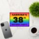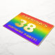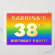 The front of this eye-catching thirty-eighth birthday celebration/party foil invitation card design features a personalised name, a large number “38th”, the message “BIRTHDAY PARTY!”, and a border. The background of the front has a vibrant, multicolored, rainbow spectrum inspired gradient pattern. The back features personalised details about the event, such as the date, time, place/venue, and any other relevant information. Personalised invitations like these might be a fun way to invite attendees to a birthday party/gathering being held to honour somebody’s 38th birthday. [~Z0000599]