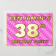The front of this loving and joyful thirty-eighth birthday party/celebration foil invitation card design features a custom name, a large number “38th”, the message “BIRTHDAY PARTY!”, and a border. The background of the front features an upbeat pattern with dark pink and light pink stripes and heart shapes. The back features personalised details about the event, such as the date, time, venue, and any other information that may be useful. Customised invitations like these might be a fun way to invite guests/attendees to a birthday gathering/party being held to honour somebody’s 38th birthday. [~Z0000603]