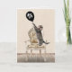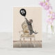 Grey tabby cat reaching for a black balloon on an old-fashioned chair for 38th birthday.
