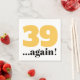 When you want to celebrate a birthday without giving away the number of candles on the cake, you can celebrate your 39th birthday over and over again. Yellow gold and black graphic text says 39 Again!