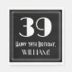 This vintage appearance and Roaring Twenties inspired birthday themed paper napkin design features a large art deco look inspired number "39", the message "Happy 39th Birthday,", a custom name, and a border pattern consisting of thin lines. Fun, customised birthday themed paper napkins like this might be used at somebody’s thirty ninth birthday party. [~Z0000461]
