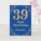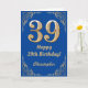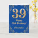 39th Birthday Blue and Gold Glitter Frame Card