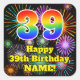 39th Birthday: Fun Fireworks Look, Rainbow # 39 Square Sticker