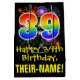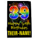 This colourful, fun, and exciting birthday gift bag design features a large number "39" with a rainbow spectrum gradient style pattern, along with the message "Happy 39th Birthday,", and an editable recipient name. It also has a colourful bursting celebratory fireworks inspired background pattern. A birthday themed gift bag like this might be a fun way to wrap a gift or present being given to somebody who is celebrating their 39th birthday. [~Z0000509]