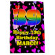 This colourful and happy birthday themed gift bag design features a large number “39” having a rainbow spectrum gradient inspired pattern. It also features the message “Happy 39th Birthday,”, and a custom name. The background features a pattern of purple, pink, and red heart shapes. A birthday themed giftbag like this might be a fun way to wrap a gift or present being given to somebody who is celebrating their thirty ninth birthday. [~Z0000551]