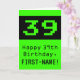 39th Birthday: Nerdy / Geeky Style "39" and Name Card