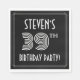This elegant and 1920s-1930s style inspired thirty-ninth birthday party/celebration paper napkin design features a custom name, a fancy art deco look inspired number “39th”, the message “BIRTHDAY PARTY!”, and a border pattern consisting of lines. The background is colored black by default, but it can be customized to a different color, if desired. Elegant birthday themed paper napkins like these might be used at a birthday party for somebody who is celebrating their thirty ninth birthday. [~Z0000616]