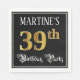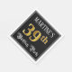 This ornate and elegant birthday paper napkin design features a custom name and the message “39th Birthday Party”. The large number “39th” has a faux/imitation gold-inspired colouring pattern, and the words “Birthday Party” are in fancy script-style text. The background is coloured black by default (although it can be customised). Fancy, opulent paper napkins like this might be useful at a birthday celebration being held to celebrate somebody’s thirty ninth birthday. [~Z0000565]