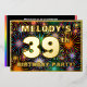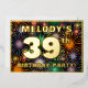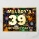 The front of this joyful and vibrant thirty-ninth birthday celebration foil invitation card design features a custom name, a large number “39th”, the message “BIRTHDAY PARTY!”, and a border. The background of the front features an upbeat, multicolored pattern that resembles bursting celebratory fireworks. The back features personalised details about the event, such as the date, time, venue, and any other important information. Customised invitations like these might be a fun way to invite guests to a birthday gathering/party being held to celebrate somebody’s 39th birthday. [~Z0000602]