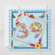 A fun birthday party invitation with happy colours, flowers and butterflies.A printed card that has a craft look. The numbers are made from flowers. See the whole range of invitations and cards in my store.