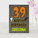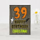 The front of this spooky and scary Halloween birthday themed greeting card design features a large number "39". It also features the message "HAPPY BIRTHDAY,", and a custom name. There are also depictions of a bat and a ghost on the front. The inside features a personalized birthday greeting message, or could perhaps be cleared and left blank if a message is to be written by hand instead. A personalized birthday card like this might be a fun way to send birthday wishes to somebody who is celebrating their thirty ninth birthday and who was also born on Halloween (October 31st). [~Z0000410]