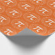 These orange and white Pi Day gift wrapping paper features a 3.14 spiral Pi number and a Pi symbol pattern.