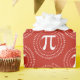 These red and white Pi Day gift wrapping paper features a 3.14 spiral Pi number and a Pi symbol pattern. The background colour is easy to customise inside the design tool.