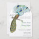 3 Aqua Peacock Vintage Feathers & Bird Invitation
