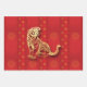 Chinese traditional golden tiger paper-cut and golden "Year of The Tiger" in hand writing style. Design on wrapping paper flat sheet set of 3 with red and black colours background. You can easily change background colour by clicking the customise button.. ----- "The Tiger (寅) is one of the 12-year cycle of animals which appear in the Chinese zodiac related to the Chinese calendar. The Year of the Tiger is associated with the Earthly Branch symbol 寅. (...) People born within these date ranges can be said to have been born in the "Year of the Tiger", while also bearing the following elemental sign: