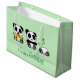 3 Cute Little Pandas on Green Large Gift Bag