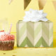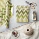 Happy super-sized zig zag pattern gently shaded to created a 3-D 'folded paper' illusion. In warm vintage of moss green, ivy, ivory & pale limeade. This wrapping paper design works especially well w/ the optional linen paper.