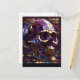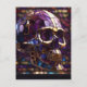 3-D Skull, Purple, Faux Stained-Glass, Reaper, Holiday Postcard