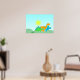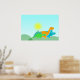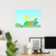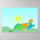 3 Dinosaur Friends Poster. Three cute little dinos: green Stegosaurus, orange Diplodocus and blue triceratops on a happy sunny day poster. This bright poster print is fully customisable, add your text and images! A great cartoon dinosaur poster for the little big dino fan!