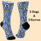 3 Dogs & 3 Names Personalised Pet Photos on Blue Socks