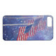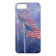 Three flags for a patriotic Apple iPhone 7 Barely There case. The background is blue with stars and mist.
