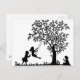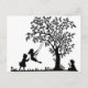 3 Girls, Swinging on Tree Swing & Picking Flowers Postcard