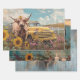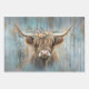 Rustic Highland cow wrapping paper set sized 19x29 inches, perfect for decoupage on flat surfaces. This trio features three richly detailed designs: