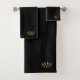 3 Initial Monogram Gold Script Name Black Bath Towel Set