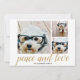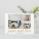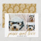 3 Photo Christmas Script Gold Damask Peace Love Holiday Card