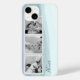 3 Photo Collage and Name Trendy Aqua Blue Case-Mate iPhone Case