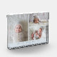 Modern and minimal newborn keepsake photo block featuring 3 photo collage on a blue background. You can add your baby's photo with birth stats information.