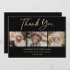 3 Photo Collage Modern Black Gold Graduation Thank You Card