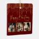 “Happy Christmas” in beautiful faux gold script on a red background. Replace photos with 3 of your personal favourite photos. Gold faux string lights/ lanterns hanging down. Change the year and what a beautiful ornament. Elegant. So simple, yet chic.