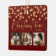 “Christmas time” in beautiful faux gold script on a red background. Replace photos with 3 of your personal favourite photos. Gold faux string lights/ lanterns hanging down. Change the year and what a beautiful ornament. Elegant. So simple, yet chic.