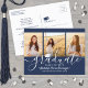 3 Photo Collage Simple Navy Blue White Graduation Announcement Postcard