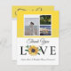3 Photo collage Sunflower Grey Yellow Wedding Thank You Card