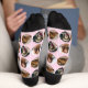 These 3 photo crew socks with pink background make a great gift for any dachshund lover. Create your own with your very own dog pictures for a personalised addition to your ward robe. A black band around the top of the sock is customised to say weaponised baby eyes or customise it with any name or saying that makes it even more personal.