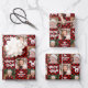 3 Photo Family Buffalo Plaid White Reindeer Wrapping Paper Sheet