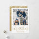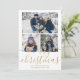 An elegant photo holiday card featuring your special favourite 3 photos and your family name and date set in classic modern typography over a chic script merry christmas message. Designed by Thisisnotme©