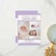Simple, classy and elegant three photo lavender, white and grey with black text baby shower and announcement combination "Thank You" design with message on back.