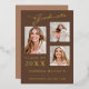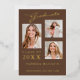 Beautifully elegant 3 photo graduation announcement cards. Featuring modern text with calligraphy script in your choice of gold, silver or rose foil. The design is complimented with a stylish earth tone brown background on the front with a lighter tan colour on the back. The back of the card offers a personalised announcement text space for that special graduate. To see more items like this, visit my store here at "www.Zazzle.com/LakeViewCardCo". Thanks