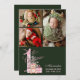 Celebrate your baby girl’s very first Christmas with this heartwarming holiday photo card! Featuring a soft watercolor teddy bear, festive pink gifts, a pastel tree, and space to highlight your newborn’s name, birth date, weight, and height — this card is the perfect keepsake for proud new parents. The rich forest green background and cosy photo layout make it both classic and charming. A must-have for sentimental moms and holiday magic lovers.
