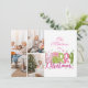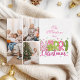3 Photo Pink Green Bow Tree Merry Christmas Holiday Card